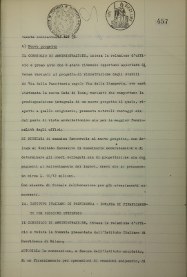 Nuova sede di Roma, provvedimenti diversi