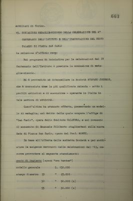 Coniazione medaglie ricordo della celebrazione del IV° centenario dell'Istituto e dell'inaugurazione del nuovo palazzo di piazza San Carlo
