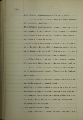 Nuova sede di piazza San Carlo, provvedimenti diversi