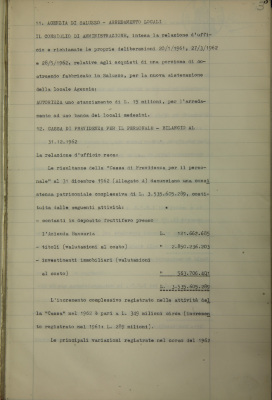 Cassa di previdenza per il personale, bilancio al 31 dicembre 1962
