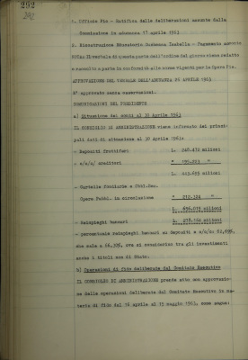 Parte seconda - Gestioni di beneficenza Ufficio pio, ratifica delle deliberazioni prese dalla Commissione in adunanza 17 aprile 1963 (verbale a parte)