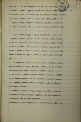 Sede di Milano, stanziamento integrativo per sistemazione locali