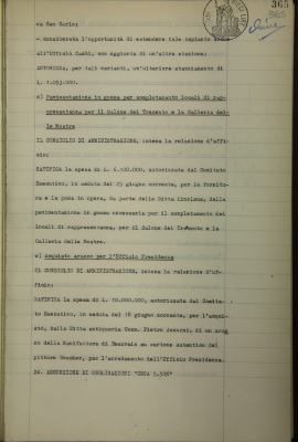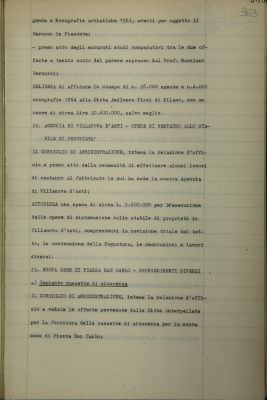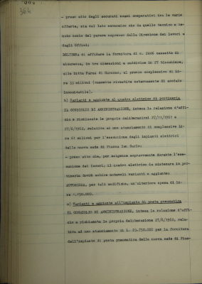 Nuova sede di piazza San Carlo, provvedimenti diversi: impianto cassette di sicurezza; varianti e aggiunte al quadro elettrico di portineria e di posta pneumatica; pavimentazione in gomma per completamento locali di rappresentanza per il Salone dei trecento e la Galleria delle mostre; acquisto arazzo per l'Ufficio di presidenza, da Accorsi