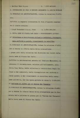 Nuova sede di piazza San Carlo, provvedimenti diversi: coloritura e verniciatura infissi, radiatori, tinteggiatura soffitti e pareti, rivestimenti in muraflex; poltrone di platea per il Salone dei trecento