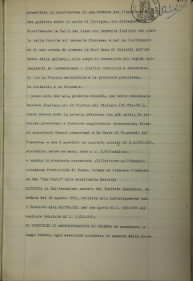 Società Italiana per il traforo del Colle di Ciriegia SI.TRA.CI. Partecipazione dell'Istituto