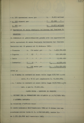 Comunicazioni varie: situazione dei conti al 31 gennaio 1965; operazioni di fido e di mutuo fondiario deliberate dal Comitato esecutivo