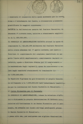 Centro Contabile di Moncalieri, provvedimenti vari