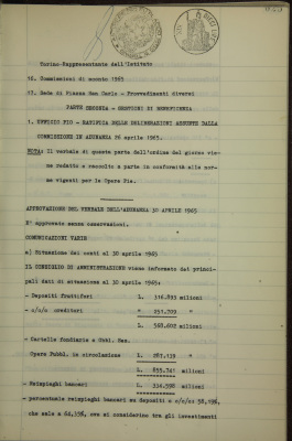 Comunicazioni varie: situazione dei conti al 30 aprile 1965; operazioni di fido e di mutuo fondiario deliberate dal Comitato esecutivo