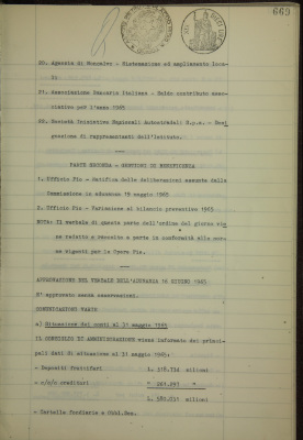 Comunicazioni varie: situazione dei conti al 31 maggio 1965; operazioni di fido e di mutuo fondiario deliberate dal Comitato esecutivo