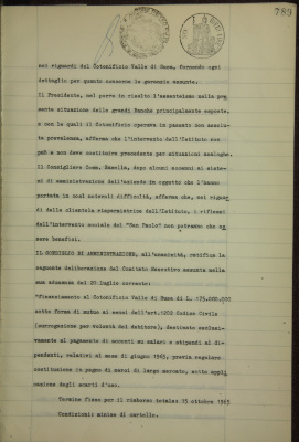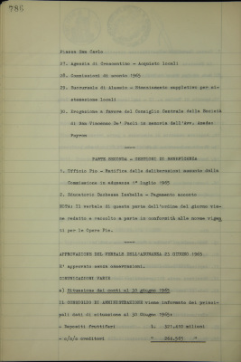 Comunicazioni varie: situazione dei conti al 30 giugno 1965; operazioni di fido e di mutuo fondiario deliberate dal Comitato esecutivo; Cotonificio Valle di Susa S.p.A., finanziamento; Società Finanziaria Piemontese