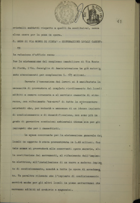 Sede di via Monte di pietà. Sistemazione locali cassette
