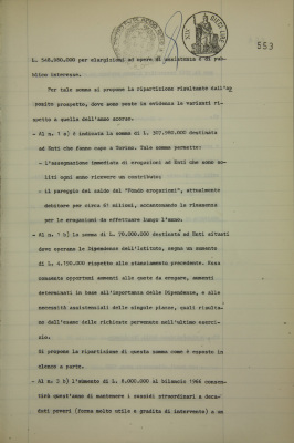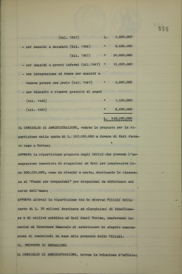 Ripartizione del fondo per opere di assistenza e di pubblico interesse sugli utili 1965 dell'Azienda bancaria