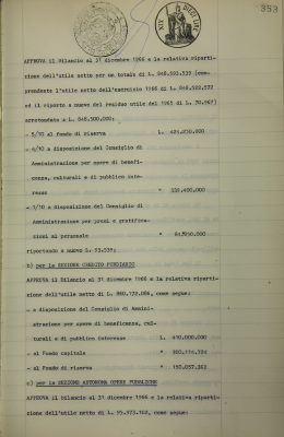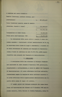 Parte prima - gestioni di credito. Approvazione dei bilanci al 31 dicembre 1966
