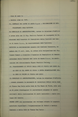 Trasferimento di uffici dalla sede di piazza San Carlo alla sede di via Monte di pietà e nuova organizzazione della sede di Torino di piazza San Carlo
