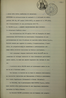 Valtur S.p.A. Aumento partecipazione dell'Istituto