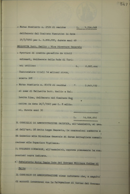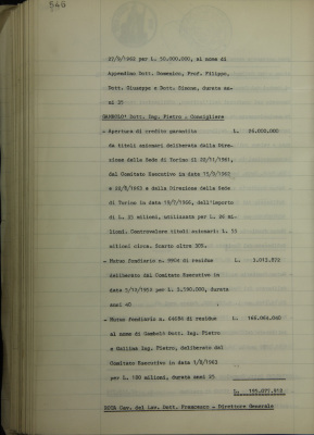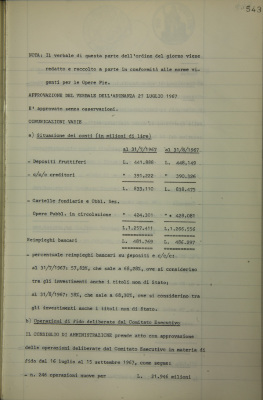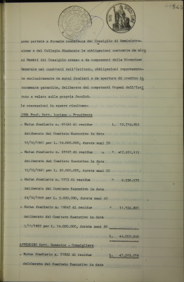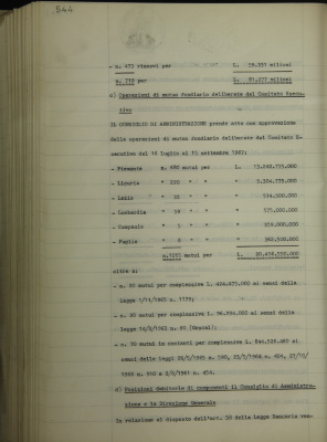 Comunicazioni varie: situazione dei conti (in milioni di lire); operazioni di fido e di mutuo fondiario deliberate dal Comitato esecutivo; posizioni debitorie di componenti il Consiglio di amministrazione e la Direzione generale; ambulatorio Anton Dante Coda del Sovrano Militare Ordine di Malta;