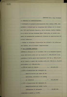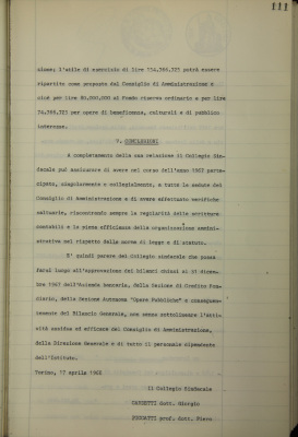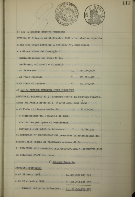 Parte prima - gestioni di credito. Approvazione dei bilanci al 31 dicembre 1967