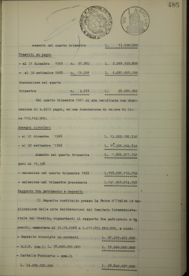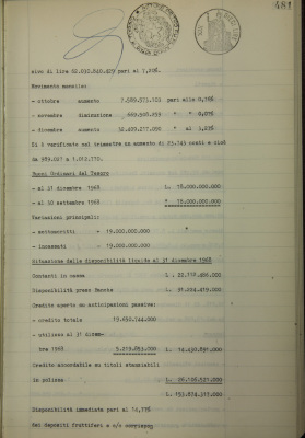 Parte prima - gestioni di credito. Relazione sull'andamento dell'Istituto nei diversi settori di attività nel 4° trimestre 1968