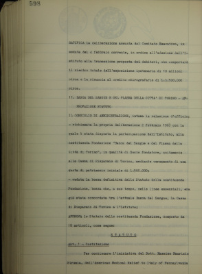 Banca del sangue e del plasma della città di Torino. Approvazione statuto