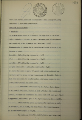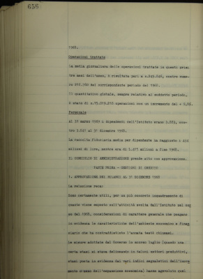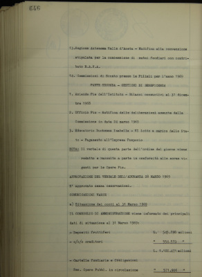 Comunicazioni varie: situazione dei conti al 31 marzo 1969; operazioni di fido e di mutuo fondiario deliberate dal Comitato esecutivo; relazione sull'andamento dell'Istituto nei diversi settori di attività