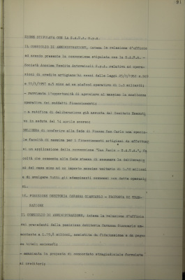Facoltà di massima alla sede di piazza San Carlo per operazioni di credito artigiano in applicazione della convenzione stipulata con la S.A.V.A. S.p.A.