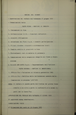 Comunicazioni varie: situazione dei conti al 30 giugno 1969; operazioni di fido e di mutuo fondiario deliberate dal Comitato esecutivo; nuove direttive in materia di operazioni a lungo termine