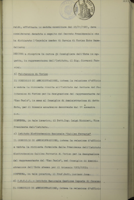 Designazione di rappresentanti dell'Istituto in enti e società: Ospedale Amedeo di Savoia di Torino; Politecnico di Torino; Istituto elettrotecnico nazionale Galileo Ferraris; I.N.G.I.C. - Istituto nazionale gestione imposte di consumo