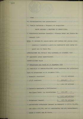 Comunicazioni varie: situazione dei conti al 31 dicembre 1969; operazioni di fido e di mutuo fondiario deliberate dal Comitato esecutivo; facoltà di massima in materia di fido; posizione debitoria S.I.R.