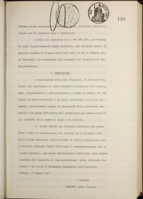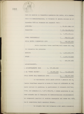 Parte prima - Gestioni di credito Approvazione dei bilanci al 31 dicembre 1970