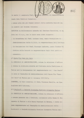 Designazione di rappresentanti dell'Istituto in enti e società: Aeroporto di Cuneo - Levaldigi S.p.A.; Autostrada Albenga - Garessio - Ceva S.p.A.; S.A.R.A. - Società Autostrade Romane e Abruzzesi p.A.; S.A.R.I.C. - Società riscossione imposte e contributi S.p.A.; Istituto per l'edilizia economica e popolare di Torino S.p.A.; S.I.N.A. - Società iniziative nazionali autostradali; Opera pia Casa del Sole; S.A.G.A.T. - Società Azionaria Gestione Aeroporto Torino; LOCAT - Locazione attrezzature S.p.A.