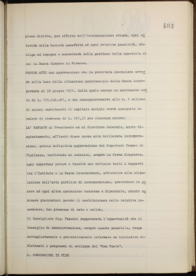 Parte prima - Gestioni di credito Incorporazione della Banca Fiorentina di Credito S.p.A. - Firenze