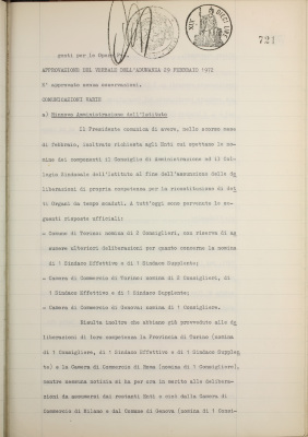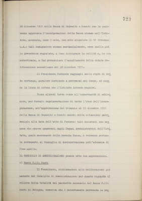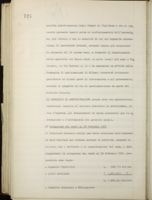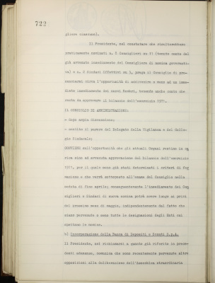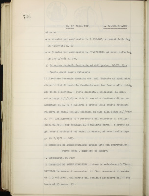 Comunicazioni varie: rinnovo amministrazione dell'Istituto; incorporazione della Banca di Depositi e Sconti S.p.A.; Banco Fratelli Santi; situazione dei conti al 29 febbraio 1972; operazioni di fido e di mutuo fondiario deliberate dal Comitato esecutivo; emissione cartelle fondiarie ed obbligazioni OO. PP. 6% a fronte degli scarti ratizzati