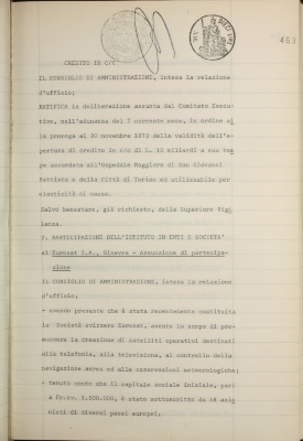 Ospedale maggiore di San Giovanni Battista e della città di Torino. Proroga apertura di credito in c/c