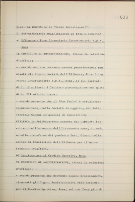 Rappresentanti dell'Istituto in enti e società: Efibanca; Istituto per il credito sportivo - Roma; scuola tecnica per l'arte bianca e per le industrie dolciarie, Torino; consorzio garanzia collettiva fidi, Torino
