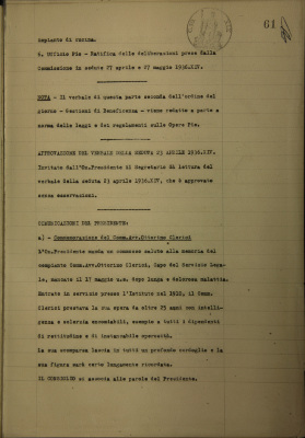 a) commemorazione del comm. avv. Ottorino Clerici;