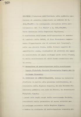 Partecipazioni dell'Istituto in enti e società: Locat; assunzione di partecipazione nella costituenda S.p.A. FI. L.S.E. - Società Finanziaria Ligure per lo sviluppo economico