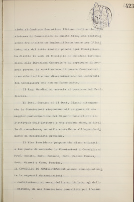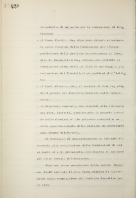 Comunicazioni della presidenza:proposte di rotazione di consiglieri nel Comitato esecutivo, discussione; commissione consultiva per l'esame preliminare delle pratiche da sottoporre al Consiglio di amministrazione; Commissione consultiva per le erogazioni