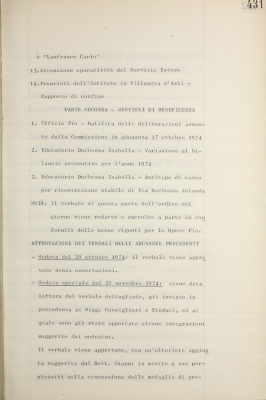 Approvazione del verbale dell’adunanza del 29 ottobre 1974 e della seduta speciale del 20 novembre 1974, con modifiche