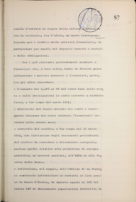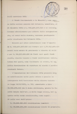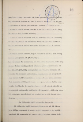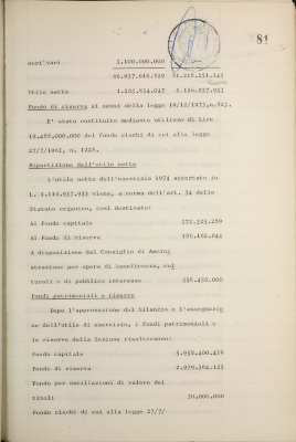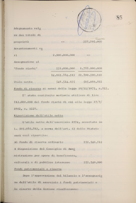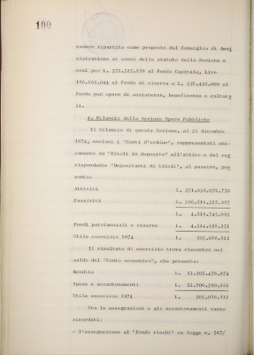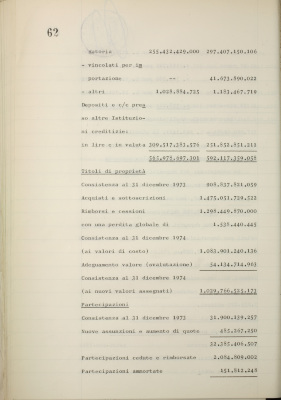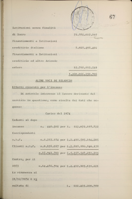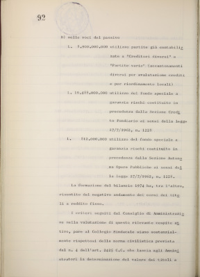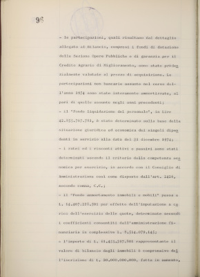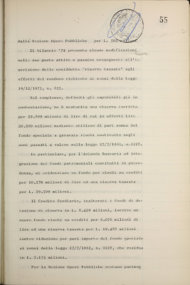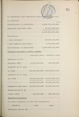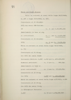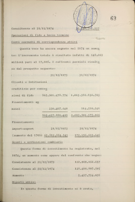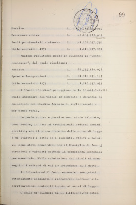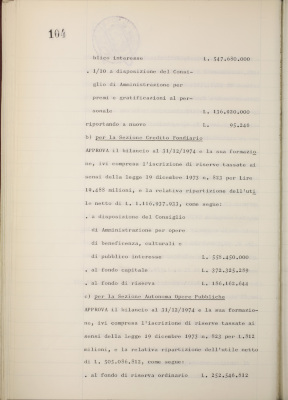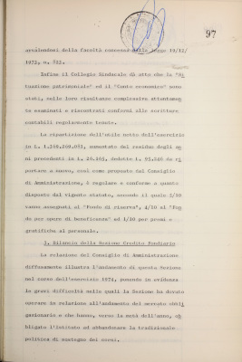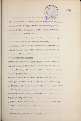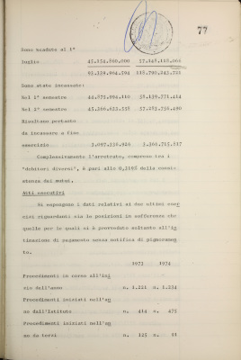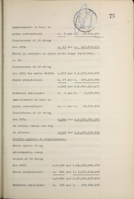 Parte prima - Gestioni di credito Approvazione dei bilanci al 31/12/1974