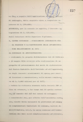 Centro contabile, stanziamento integrativo per il noleggio e la manutenzione delle apparecchiature relativamente al 1975
