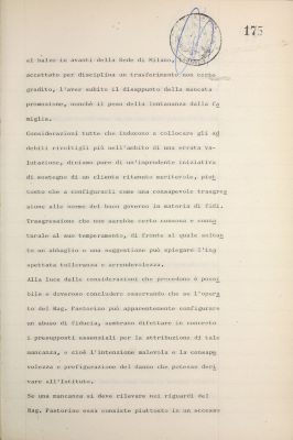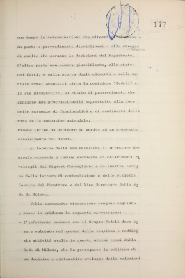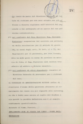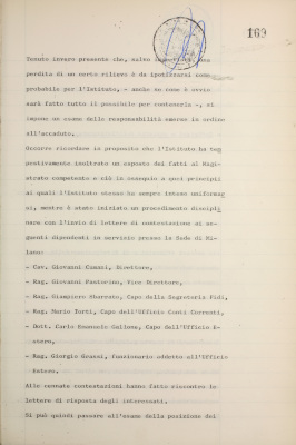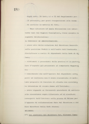 Posizione debitoria fedeli presso la sede di Milano, esame risultati degli accertamenti e provvedimenti relativi