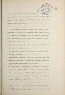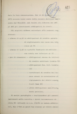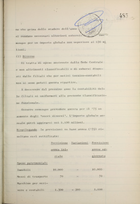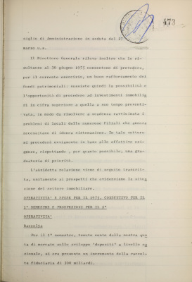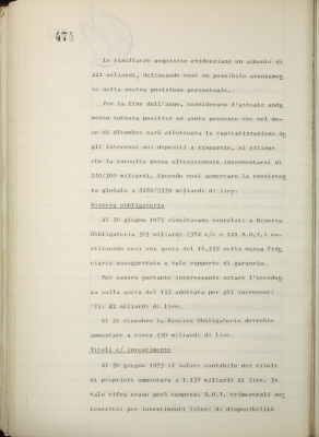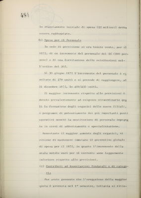 Parte prima - Gestioni di credito Operatività e spese per il 1975, consuntivo per il promo semestre e prospezioni per il secondo
