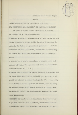 Modifiche alla facoltà di massima in materia di fido per operazioni garantite da titoli