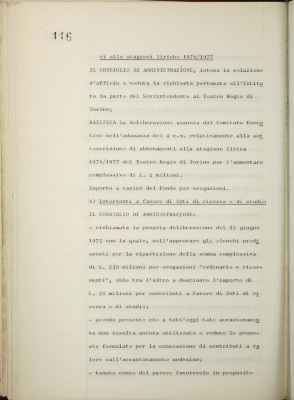 Proposte di erogazioni: Teatro Regio di Torino, richiesta per abbonamenti alle stagioni liriche 1976-1977; interventi a favore di enti di ricerca e di studio; erogazioni diverse