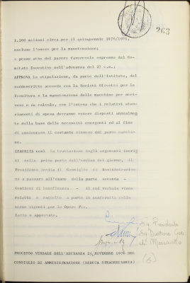 Accordo con la S.p.A. Olivetti per la fornitura e manutenzione di macchine da scrivere e da calcolo