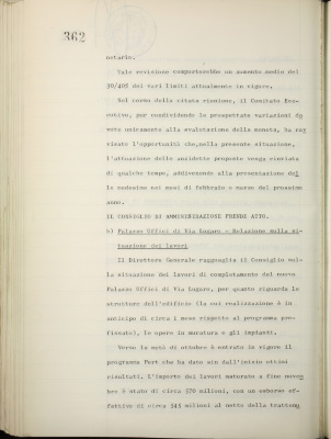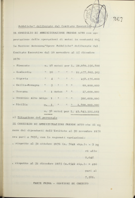 Comunicazioni varie: cause promosse a seguito dell'incorporazione della Banca Depositi e Sconti da parte dell'Istituto; ringraziamento del consigliere Gianni per l'opera svolta quale membro del comitato esecutivo nel 1976; incontro con il governatore della Banca d'Italia; situazione degli affidamenti; mutui alle cooperative edilizie; potenziamento dell'organizzazione all'estero, istituzione di ufficio di rappresentanza a Lagos (Nigeria); proposta di revisione della facoltà di massima per le operazioni attive; Palazzo Uffici di via Lugaro, relazione sulla situazione dei lavori; informativa sulla situazione dei conti dell'Istituto al 30 novembre 1976; operazioni di fido e di mutuo fondiario deliberate dal Comitato esecutivo; operazioni mutuo della Sezione Opere Pubbliche deliberate dal Comitato esecutivo; situazione del personale