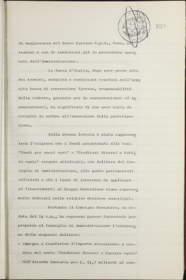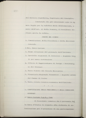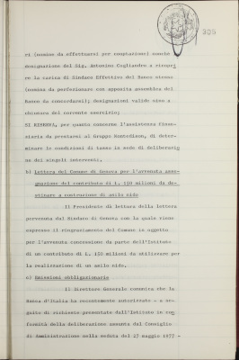 Comunicazioni della Presidenza e della Direzione Generale: Banco Lariano S.p.A., Como; lettera del comune di Genova per l'avvenuta assegnazione del contributo di lire 150 milioni da destinare a costruzione di asili nido; emissioni obbligazionarie;