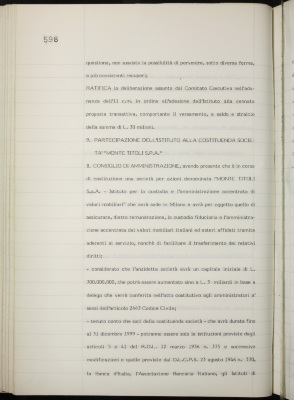 Partecipazione dell'Istituto alla costituenda società «Monte titoli S.p.A.»