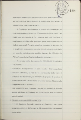 Comunicazioni varie: richiesta delle organizzazioni sindacali per il rinnovo del Regolamento per il personale relativamente al triennio 1977-1979; proposta di apertura di filiali dell'Istituto a Francoforte e a Londra; situazione dei conti al 28 febbraio 1978; ENI, proposta di sottoscrizione di quota di emittendo prestito obbligazionario; operazioni di fido e di mutuo fondiario deliberate dal Comitato esecutivo; operazioni mutuo della Sezione Opere Pubbliche deliberate dal Comitato esecutivo; situazione del personale