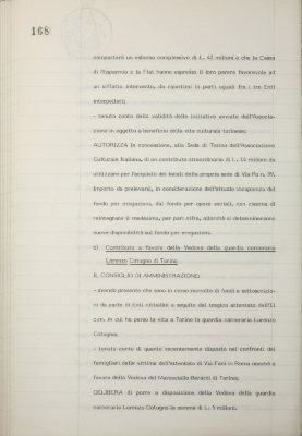 Proposte di erogazioni: Associazione Culturale Italiana, sede di Torino; contributo a favore della vedova della guardia carceraria Lorenzo Cotugno di Torino